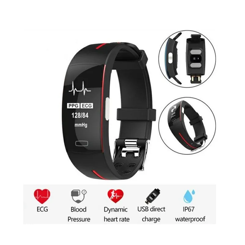 .image of Ip67 Smart Bracelet Ecg Ppg Blood Pressure Heart Rate Monitor Fitness Tracker Pedometer Sports Smar