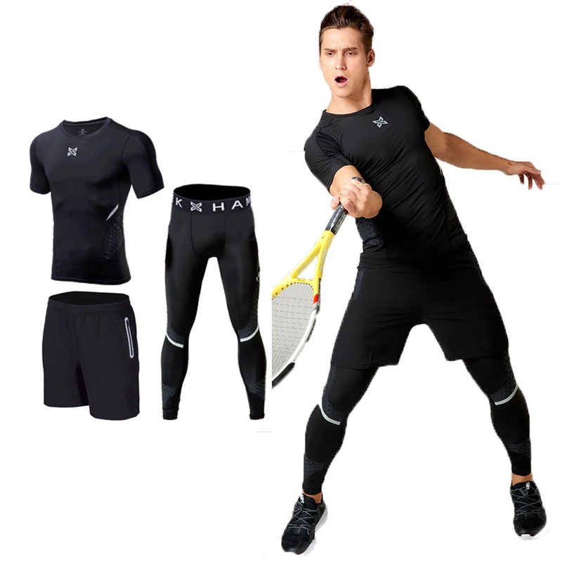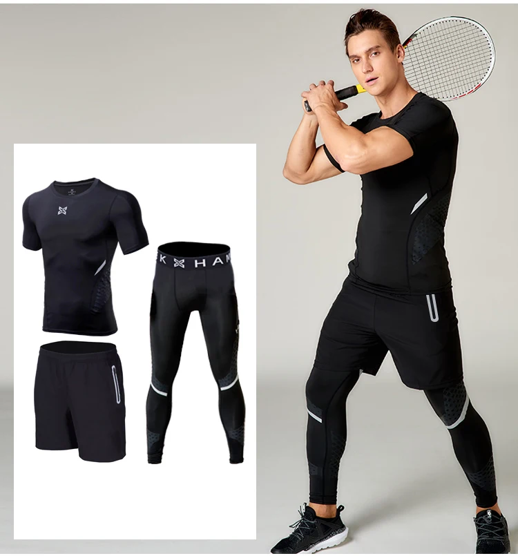 .image of New Compression Tracksuit Fitness Tight Sportswear Running Set T-shirt Leggings Men's Sportswear De