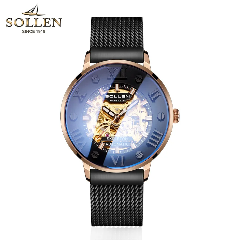 Related Product for SOLLEN Men's Mechanical Watches Waterproof Stainless Steel Strap Skeleton Automatic Watch Men Hollo