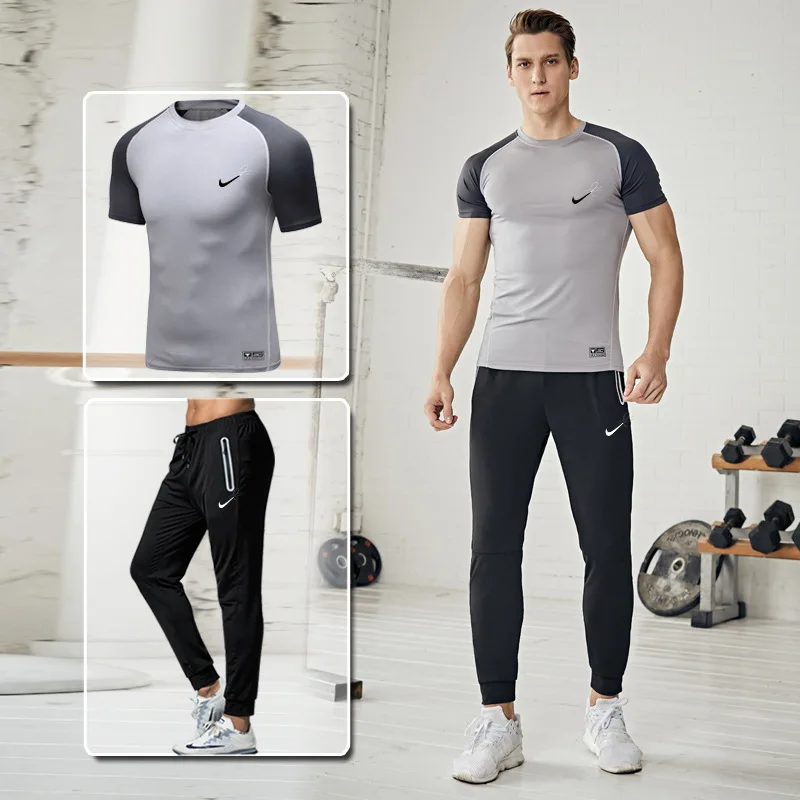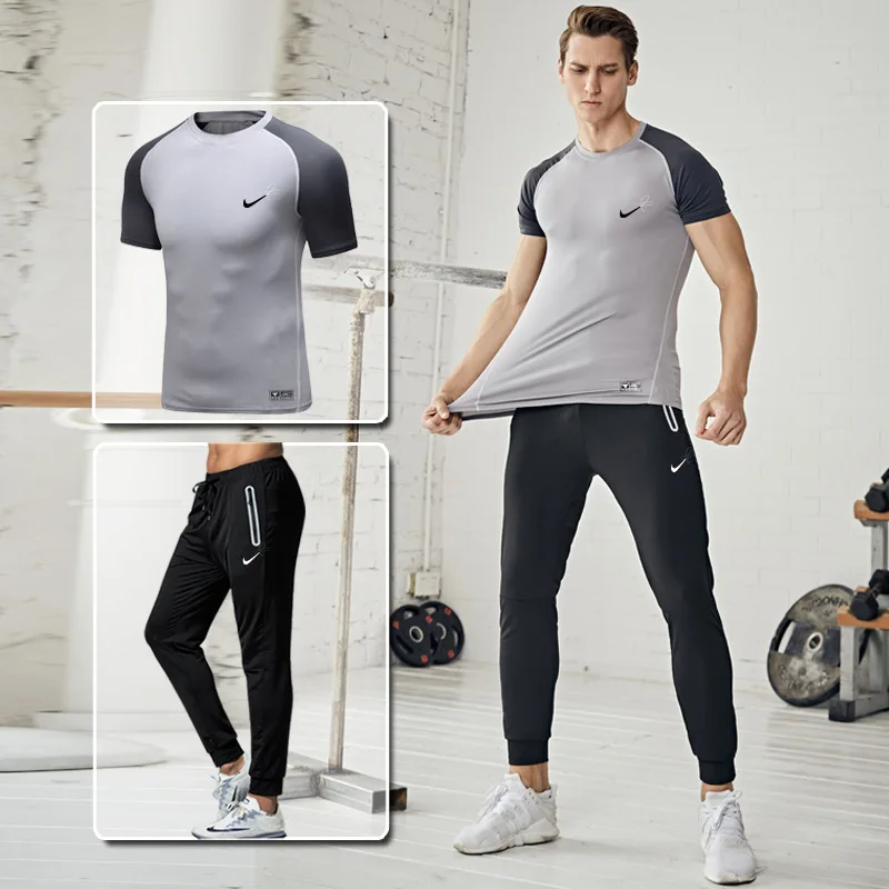.image of Sports Set Men's New Style Casual Men Fitness Suit Quick-Dry Running Training Sports Fitness Pants