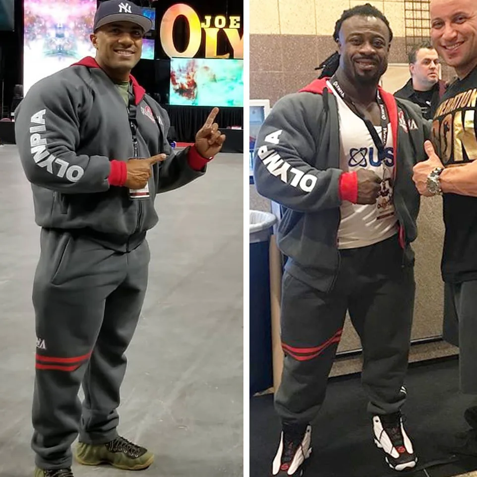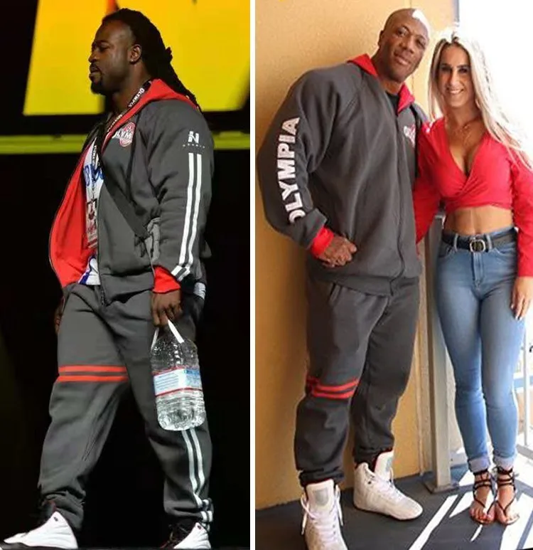 Special Chance of Men's Muscle Fitness Sweater Sports Body Building Suit Male Spring Autumn Hooded Jacket + Pants Tra