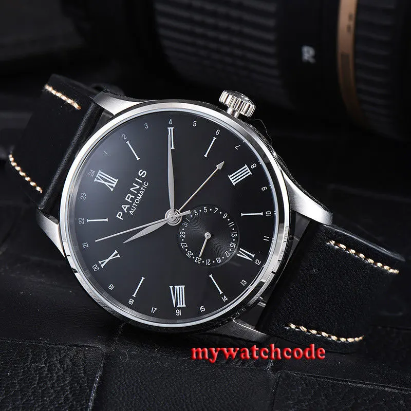 Good Price for 42mm Parnis black date 24 Hours Handset ST1690 Automatic Movement Mens Watch 952